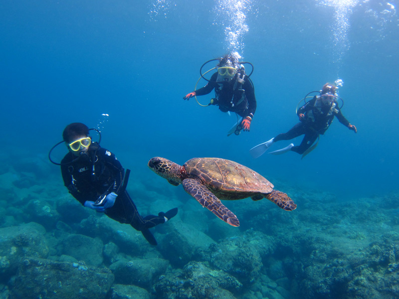 今日は千葉県からお越しのアイさん、そして神奈川県からお越しのタカシさん&マキさん親子をノースショアへご案内。シャオクスコーブとビッグチューブへ潜り、海亀&魚の群れ&洞窟&カテドラルを満喫指定頂きました。海況完璧!やはりこの季節はノースショアですね!