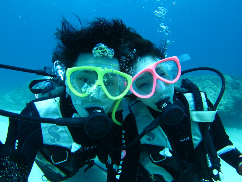 晴天の今日は、本日最終日のダイキ君、ハネムーンでお越しのサトシさん&ミキコさん、東京からお越しの吉岡さん、広島からお越しの石田さんをノースショアへご案内。今日も海況は良く、穏やかな水中では魚の群れや海亀、洞窟にカテドラルを楽しんで頂きました。