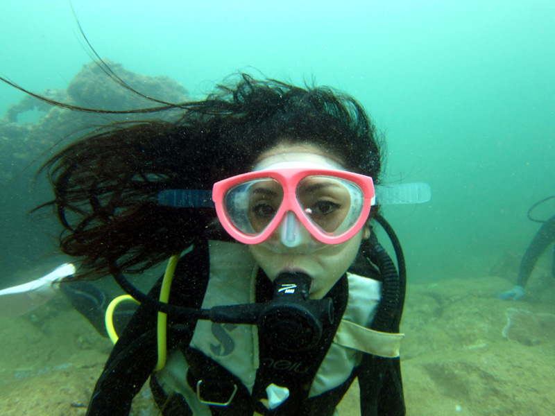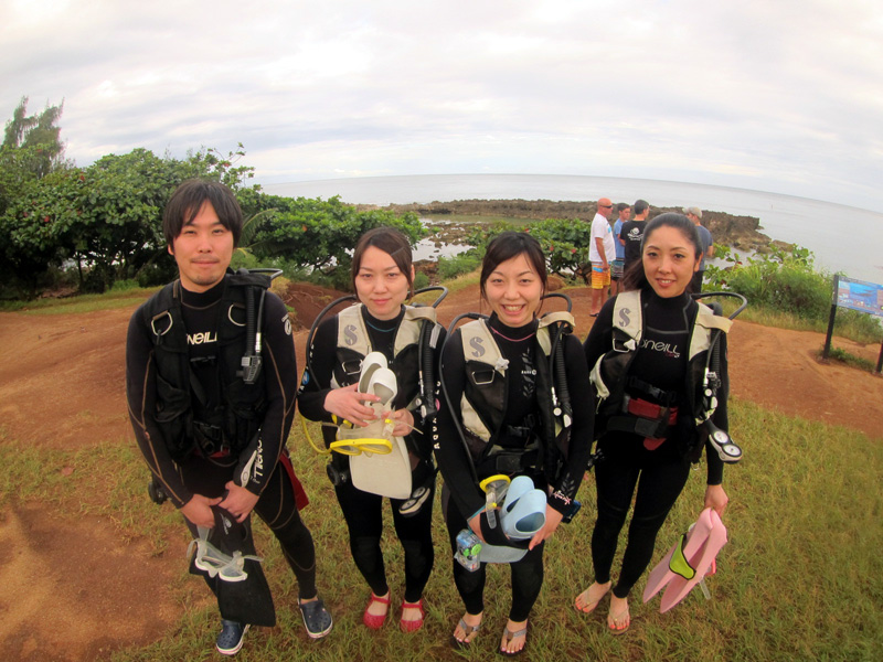 一晩、洪水警報が出るほどの激しい豪雨が続き、その影響で島中海況が悪化してしまいました。ほぼ良い状態のハワイなのですが、今日のノースショアも濁りが入ってしまい水中は緑…。それでも海況は穏やかで、濁りを除けばダイビングには問題ありません。そんな中、東京からお越しのユカさん、メグミさん&マスミさん&ヨシキさんをご案内。醜い水中でしたが海亀にも遭遇でき、いくつかの洞窟も通り抜けながら無事に終了。早く綺麗な状態に戻って食えないかなぁ…。