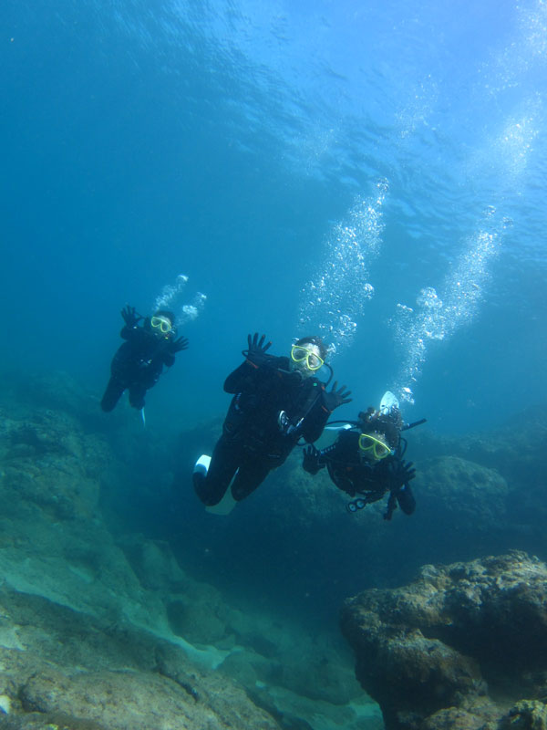毎日コロコロと変わる海況が行き先の判断を難しくするここ数日です。今日は仲良し4人組のトモミさん&シオミさん&シャカさん&アミカさんをラストミニッツのノースショアへご案内。ギリギリダイビングができるかという波予報でしたが、コンディションもよく60分間丁度のダイビングを楽しんでいただきました。
