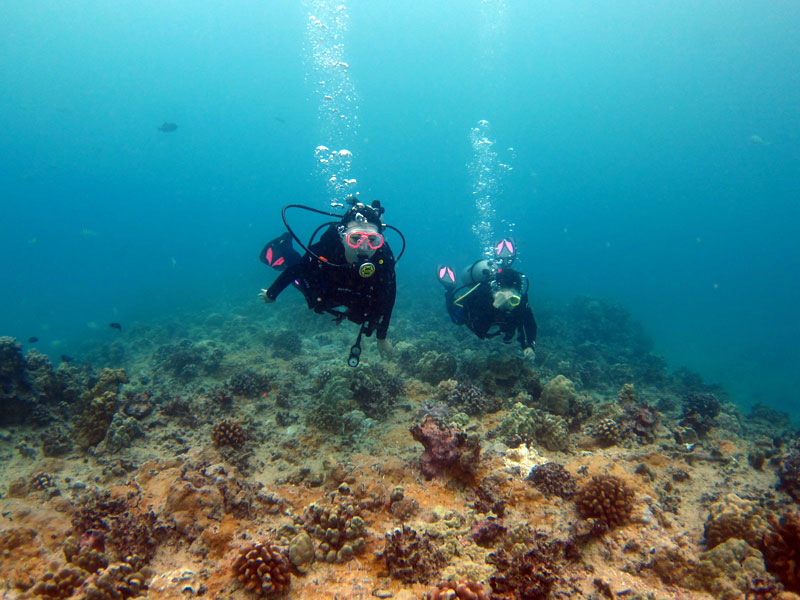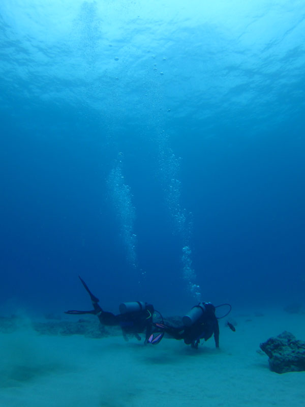 毎日いい天気です。今日はかよさん&まいさんを南の初級ボートダイビングにご案内。穏やかで真っ青、大変綺麗な水中で、海亀+サメ+魚と一緒に沢山の思い出を作っていただきました。