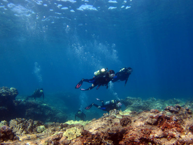 今日は半数以上が小学校の先生(偶然)。半年ぶりにお越しのひかるさん&なおさん、はとこさん&あゆきさん、山本さんをノースショアへご案内。台風がハワイに近づいていていますが海況は非常に良いです。水中も綺麗で、魚の群れや洞窟、海亀もきっちりと見つけて、ハワイのダイビングを楽しんで頂きました。