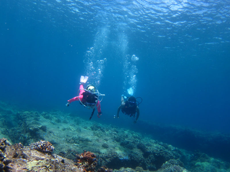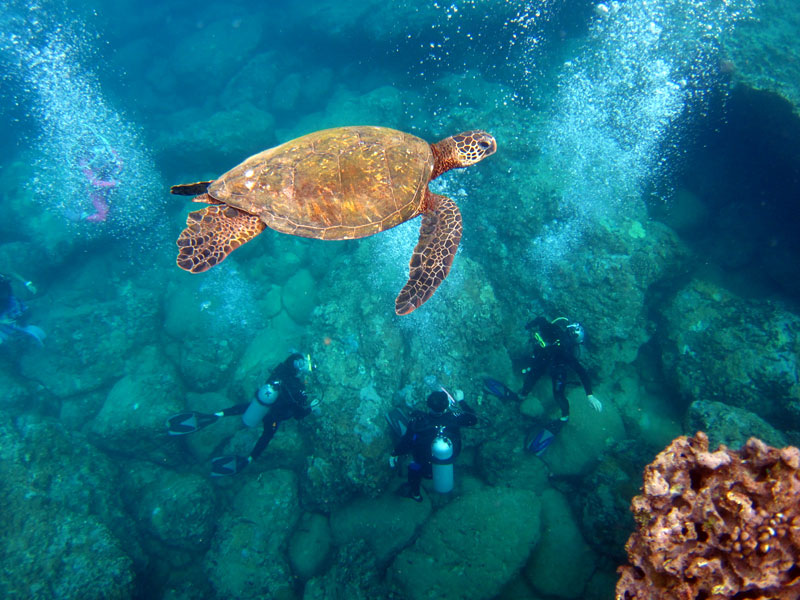 今日は、ご参加二日目のょしのりさん&つかささん、そして一年ぶりのご参加はてっぺいさん&ゆたかさん&ひでかずさんをノースショアへご案内。今年のノースショアはコンディションが安定しています。今日もじっくりと潜りながら、洞窟、海亀、魚の群れ、鮫、その他沢山…水中を存分に楽しんで頂きました。