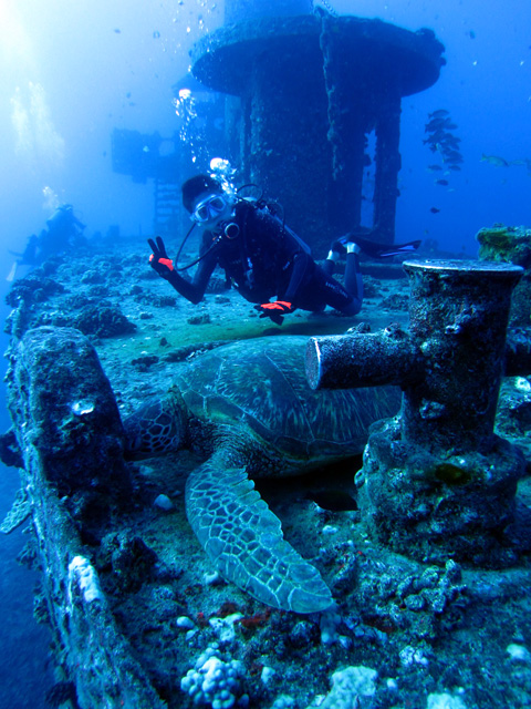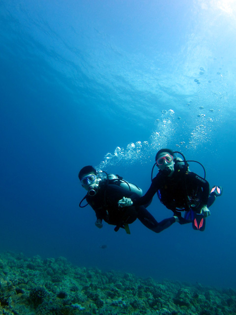 今日は、福岡からお越しのミキさん&コウタ君親子を南のボートダイビングにご案内。一本目はライセンスを持つコウタ君をW沈船のYO257へ。水中は完璧なコンディションで、沢山の魚達と海亀、2艘の大きな沈船をゆっくりと回ります。二本目は、お二人ご一緒に珊瑚の上を悠々と進みながら、こちらでも海亀と鮫、そして綺麗な魚をじっくりと見て頂きながら、ハワイでの大切な思い出を作って頂きました。