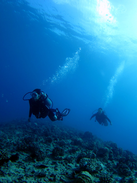 今日はハネムーンでお越しの、ヨウイチさん&ユカリさんを南の南の初級ボートダイビングにご案内。天候もよく水中は穏やかで真っ青!ゆっくりと泳ぎんがながら魚の群れや海亀、そして鮫‥を間近に見て頂きながら、ハネムーンの大きな思い出を作って頂けました。
