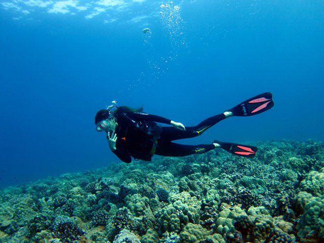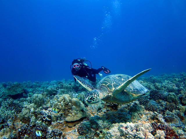 やはり晴天の今日は、2度目のご利用ナオさんを南の上級ボートダイビングへご案内。少し流れがある沈船でしたが、鮫x2と船内探検で32mを楽しみます。2本目はリーフの上をじっくりと進みながら、魚の群れや鮫、カルアンコウ。そして、ゆら~りと海亀と一緒に泳ぎながらハワイのダイビングを楽しんで頂きました。
