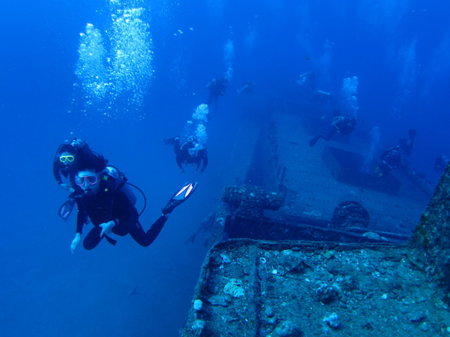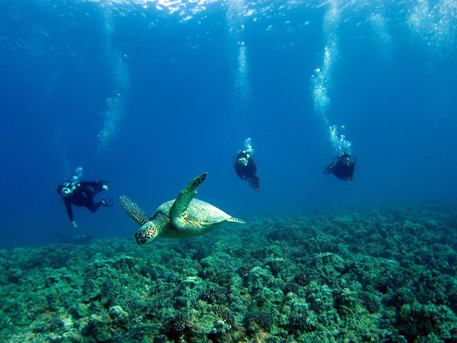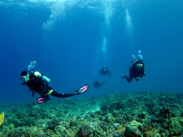 今日はユキコさん&ミノルさん&マキコさん、そして彦摩呂?さんを南の上級ボートダイビングにご案内。35mに沈む沈船SeaTigerの周りには、2頭のホワイトチップシャーク、船体にはヨスジフエダイの群れ、浮上時には海亀が目の前に現れます。そして珊瑚の上をじっくりと進んでゆく二本目のホーシューリーフ。こちらも海亀に鮫、沢山の魚達を見て頂きながらハワイのダイビングを楽しんで頂きました。