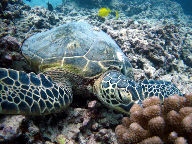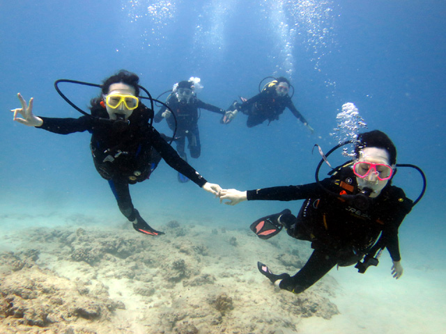 今日は福岡から2度目のご利用ようじさん、そして仲良し姉妹のかおりさん&みゆきさん、ハネムーンでお越しのゆうとさん&みやこさんを南のボートダイビングにご案内。沈船SeaTigerの水底には大きめの鮫がお休み中。二本目のKewaloPipe~HoshuReefには沢山の魚と海亀がいます。今日も皆さんに楽しい思い出を作って頂けました。