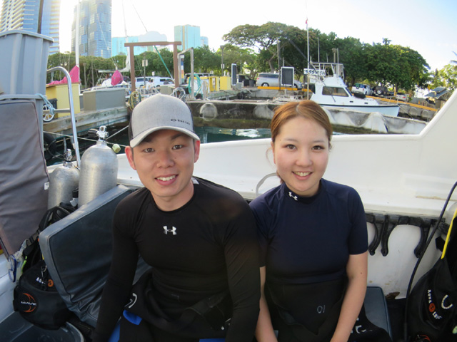 今日は大阪からハネムーンでお越しのつよしさん&えりさんを南の初級ボートダイビングにご案内。真っ青な水中で沢山の魚や海亀と一緒に泳ぎながら、ハワイダイビングの思い出を作って頂きました。