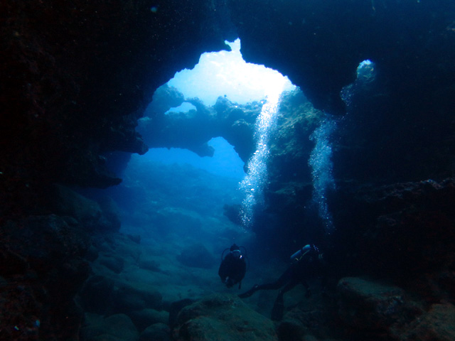 今日は、一年ぶりにハワイ帰省?でお越しのエミさん&ようへいさんを夏季限定!ノースショアダイビングツアーへご案内。今日は大聖堂があるビッグチューブでじっくりとおよそ60分のダイビングを単身でいただきました。