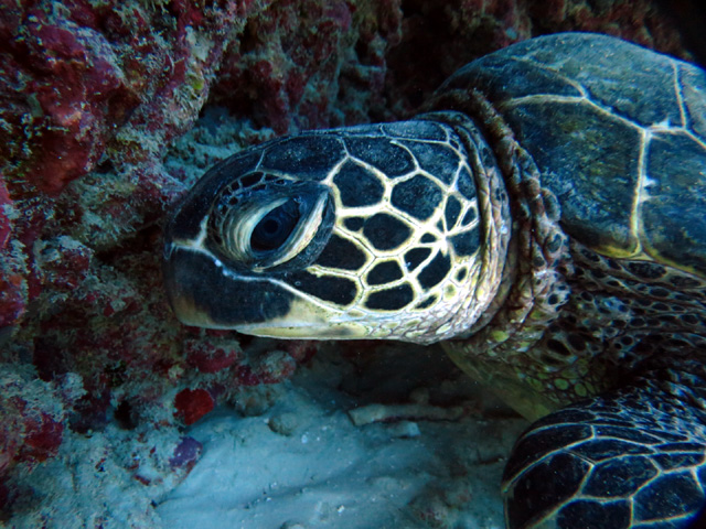 今日はつくば市からハネムーンでお越しのなおやさん&ゆりあさんを南の初級ボートダイビングにご案内。明日の独立記念日を控えた港の前のビーチは、早くも場所取り合戦が始まっています。ボートでおよそ7分、大人しい鮫がいるノーチラスリーフに到着。ゆっくりと水底に下りて珊瑚の上を進むと、軒下に1m程の鮫がお休み中。初めて誠の前で鮫を見るお二人はドキッとしたかも…。二本目はホーシューリーフで海亀ダイブ…真っ青なハワイの水中で、ハネムーンの大きな思い出を作って頂きました。