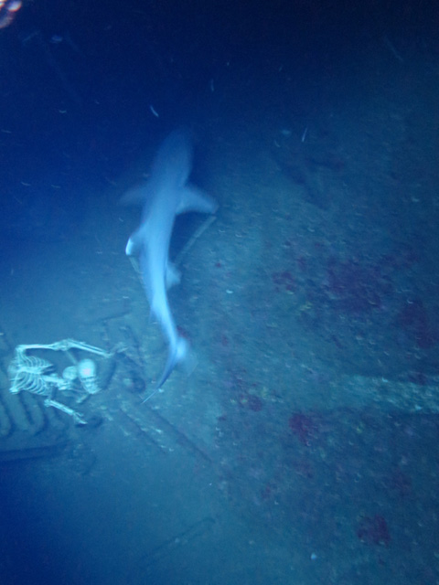 今日は淡路島からお越しのまさたかさんを、南の上級ボートダイビングにご案内。水中は透視度およそ40m…水面近くから沈船がくっきり見えます。船内に入るとおもちゃの外国の周りと鮫が泳いでいました。ディープとシャロウ、2本のダイビングを楽しんでいただけました。