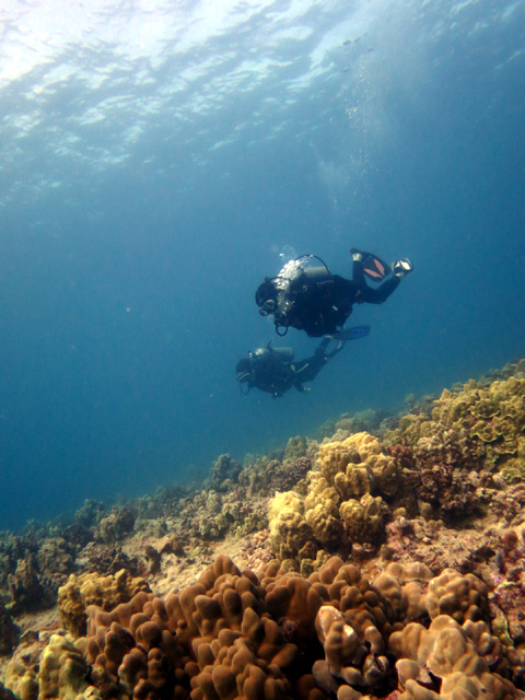 今日は静岡からお越しのてつやさん&さきさんを南の初級ボートダイビングにご案内。ライセンス取り立てのお二人ですので、少し理解出来ていなかった事をおさらいしながら、大きな海亀や魚の群れと一緒に遊んでいただきました。2回のダイビングで、グンと上手くなれましたねぇ~(^_^)v。