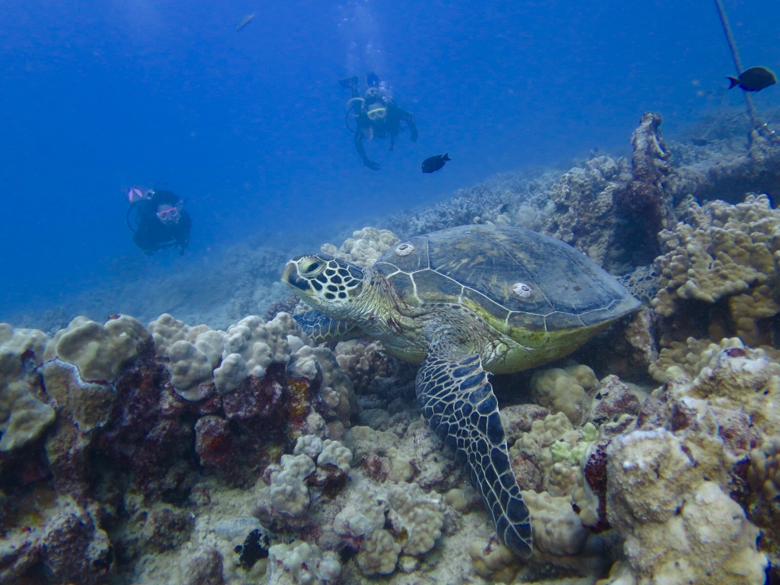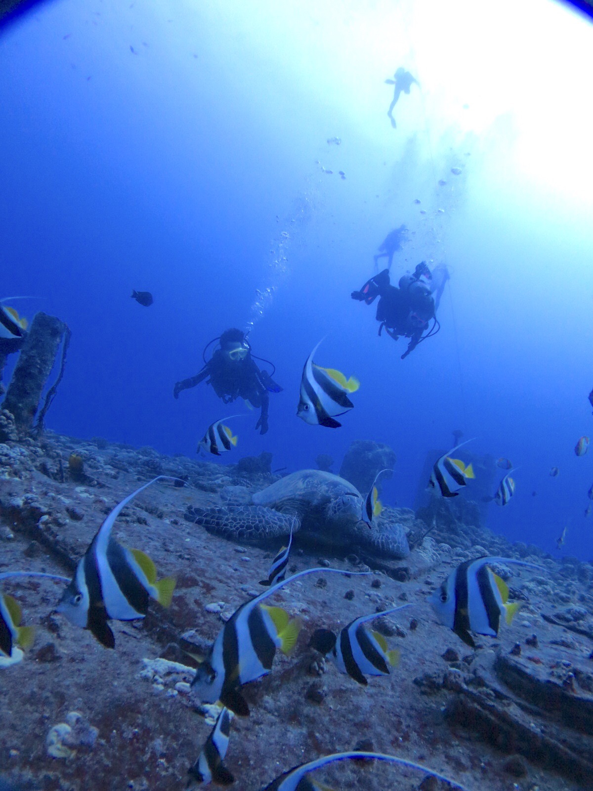 今日は宮城県からお越しの小野寺さんご夫婦を、初めてのハワイで沈没船へのファンダイビングへご案内。水深35m、全長54mの巨大な沈没船と大きな海亀に魚達…。初ハワイで大きな思い出をつくっていただけました!