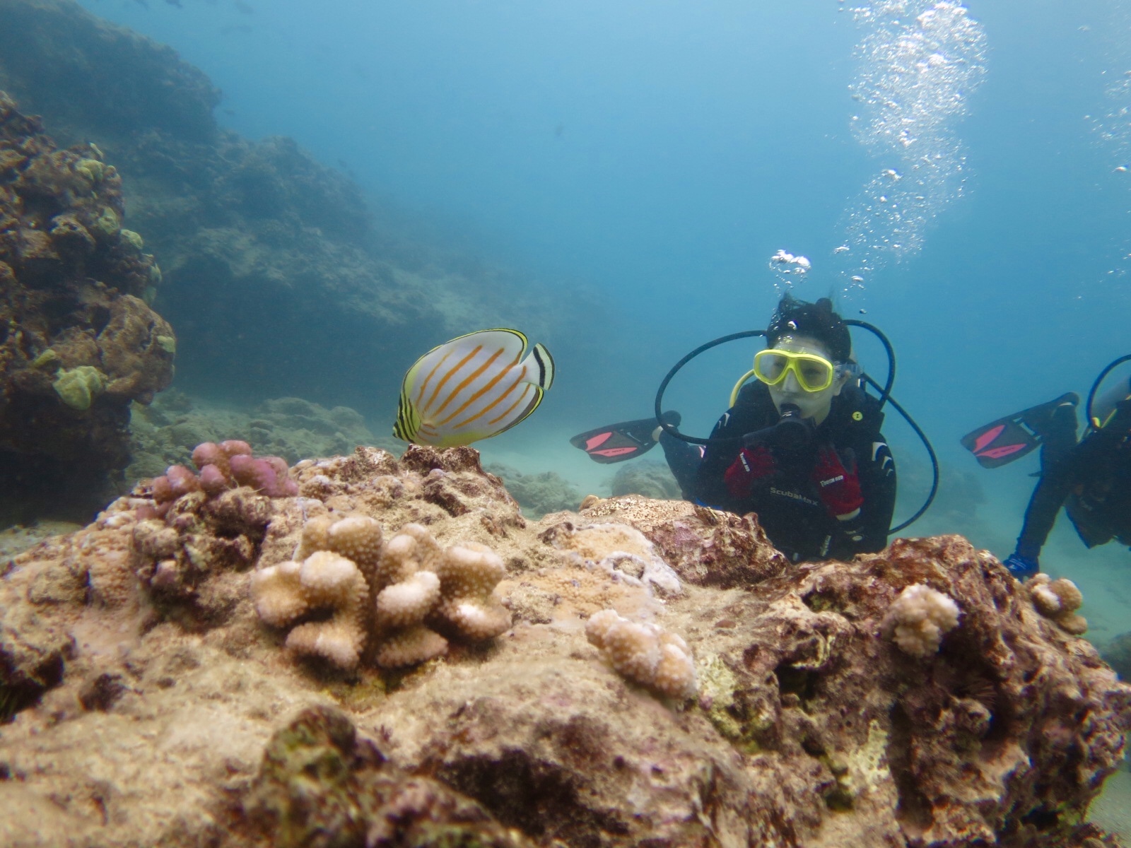 ともこさんゆうこさんのハワイ初ダイビング フレンドリーな海亀はいつも一緒に泳いでくれます。 ハナグロチョウチョウウオ ハワイのダイビングを満喫中