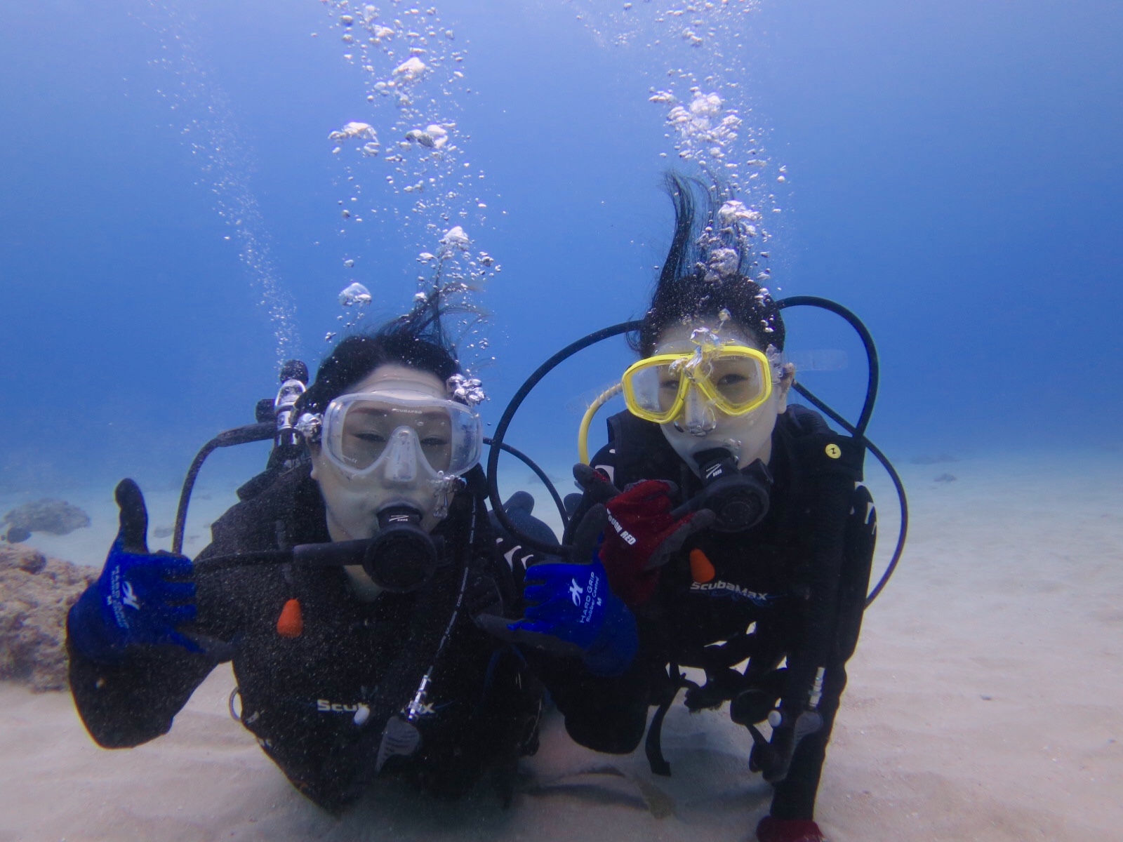 初ハワイ上陸の、ともこさんとゆうこさんをダイビングにご案内。ワイキキ沖1.5キロにあるWaikiki Canyonsはウミガメ天国!じっくりと40分以上のダイビングで、6頭の海亀と沢山の魚たちと一緒にハワイの海を楽しんでいただきました。