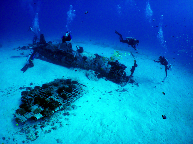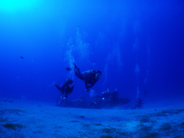 昨日に続き、今日も鳥さん&海さんと東のボートへ。朝8:30、全ての用意を整えてキャプテンを待ちます・・・が、来ない。更に待ちます・・・が、やっぱり来ない。電話で確認→ボートが故障で欠航→「・・・・先に言わんかい!」→乗るもの無くなっちゃった→ノースショアにでも。そんなこんなで結局他のボートが見つかり予定通りダイビングへ出発!一本目は“Corusair”です。流れも無い静か~な水中に入り、各自で自由潜行。水深33mに着低すると、辺り一面にはガーデンイールがニョロニョロと顔を出しています。沈んだ戦闘機の周りをゆっくりと回り、そこへ回遊して来たカンパチを観察。時間一杯で浮上開始、各自安全停止しがてらホバーリングの練習。そしてEXIT。穏やかなコンディションの中でゆったりと潜れた一本目でした。そして移動後の2本目は“SeaCave”へ。皆さん上手ですから今度はドリフトでGOです。大きな入り口を入ると、直ぐ目の前には真っ青に光る出口があり、その場所に差し込む太陽の光は非常に綺麗です。洞窟をゆっくりと一回りした外へ出ると、今度は海亀が次々に現れました。こうして仏負けも無事に終了です。明日、三日目も東で楽しみましょう。ALOHA!
