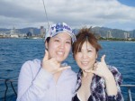 エントリー直後、真っ青に透き通った水中は辺りが丸見え!しっかりと水に慣れていただき、海亀のいる方向へゆっくりと進みます。そして10分程度のところで海亀が寝ていました。皆さん初めて見る海亀の大きさに驚いています。しばらく観察したら移動、その後も海亀が泳いできたり寝ていたり…という感じで、楽しんでいただきました。2本目のポイントへ移動中、ボートの先端にイルカが遊びに来ました!身を乗り出しながらイルカまでは2m!近いでしょ!こんな経験殆ど出来ませんよ。でも、ハワイではちょくちょくイルカが近づいてきます。
