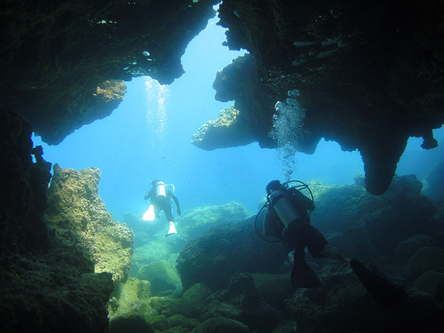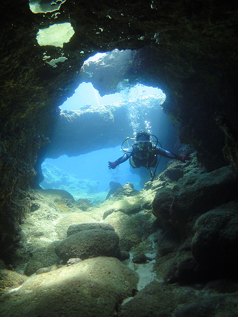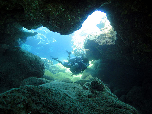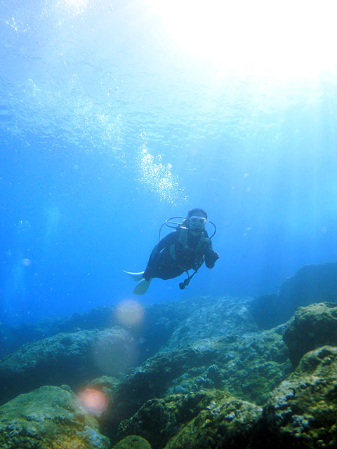 今日は、連日ご参加のマッスルNagaiさんと、北海道からお越しの“トロサンマ”Keikoさんをノースショアへご案内。今日もノースは静かなコンディションです。エントリー後、直ぐに何時もの魚の大群を書き分けながら徐々に奥へと向かいます。すると今度はシマハギ・ゴマニザ・クロハギの群れがぐるりと周りを囲みながら泳いでくれました。キラキラ光る水中で沢山の魚に囲まれると、人間を忘れそうなほどの不思議な感覚ですよ。そして今度は海亀が近づいてきました。やはり海亀は一番人気!お二人ともじっと海亀を見入っています。しばらく海亀と遊んだら、今度はメインケーブをゆっくりと通り抜けて光と影の空間をジンワリと味わっていただきます。不思議と言いますか、この神秘的な光景は何時見ても素晴らしいですねぇ…。砂地を抜けて更に別のケーブを通り、沢山の魚たちに遊んでもらいながらの65分間。この時期のハワイダイビングは最高ですよ!ALOHA!