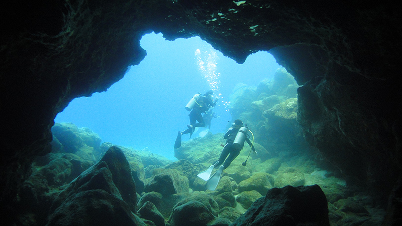 今日は、福島県からハネムーンでお越しのKentaroさん&Erikoさん、そして急遽ご参加いただいた横浜からお越しのAtsukoさんを、ノースショアへご案内。ワイキキからノースショアの手前までは曇り/雨の天候でしたが、ビーチ到着時にはすっきりと晴れてくれました。準備を済ませたら何時ものようにゆっくりと沖に向かって進みます。そしてAtsukoさんは岩の下にいる魚に夢中なのか、岩ノ下に頭を突っ込んで動きません…面白い方ですねぇ!。少しすると何時も出会うシマハギ・クロハギ・ゴマニザの群れに囲まれました。そこから少し移動した所で洞窟に到着すると、光と影のコントラストをゆっくりと楽しんでいただきます。その後もいくつかの洞窟を通り抜けながら青い光を味わい、ノースショアの水中を満喫。今日は海亀には出会えませんでしたが、それでも魚の群れや洞窟の中から見る出口の青い光を、トコトン皆さんに楽しんでいただきましたよ。Atsukoさん、お二人へのお気遣い、あありがとう御座いました。そしてKentaroさん&Erikoさん、これからもずっと仲良しで居てくださいね。お幸せに!ALOHA!