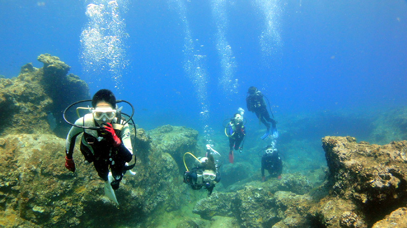 ノースショアの波もすっかりおさまり、何時もの海が戻ってきました。今日は東京都からお越しのSuzukiさんファミリーをキラキラのノースショアへご案内。ビーチからゆっくりと出発して徐々に深いところへ進みます。さっそく、沢山の魚を見て楽しんでいると、直ぐそこへ海亀が登場!皆さん初めての海亀に夢中です。5分以上でしょうか?海カメと一緒にゆっくりと奥へ奥へと泳ぎます。その後は大きく口を開けたメインケーブへ侵入。何処を出たところには、更に別の海亀が。そこでもじっくりと海亀観察を楽しんでいただき、更にダイビングは続きます。すると今度はホメジ・シマハギ・クロハギ・ゴマニザの群れが現れ、楽しさを更に大きく膨らませてくれました。水面から咲きこむキラキラ感は、やはりノースショアは最高です!深すぎず、浅すぎず、だから長い時間ダイビングが楽しめるのも、ノースショアならでわ。58分間の魚体験、今日も大成功でした!ALOHA!