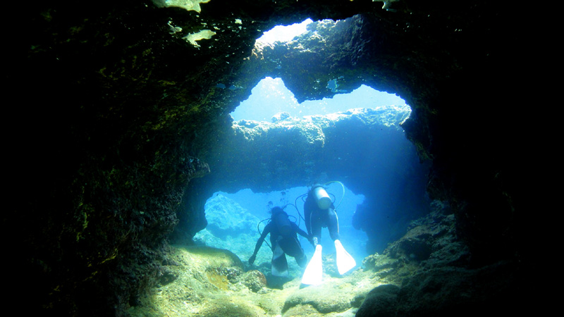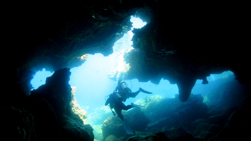 少々曇りの中、ノースショアへ向かうとちゃんと晴れるのがハワイの特徴です。今日は埼玉県からご参加のプロの漫画家さん、Ryokoさん&Motokiさんを、ノースショアへご案内。今日も鏡のような水面で穏やかな海況です。早速ダイビングを開始、先ずは何時もの魚の大群をかき分けて沖に向かいます。ゆっく~りと進むこと15分、最初の洞窟に侵入。何時見ても青く光った出口は神秘的ですねぇ。そしてその後もいくつかの洞窟をと通り抜けて、体中にハワイの青さを染み込ませます。今日は海亀には会えませんでしたが、キラキラに輝く太陽光線や何時もの魚の群れにもちゃんと会えて、100%満足していただけたようです。ALOHA!