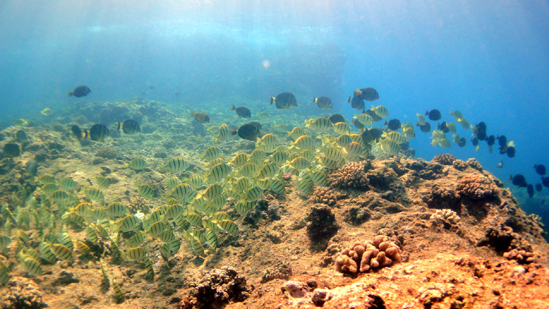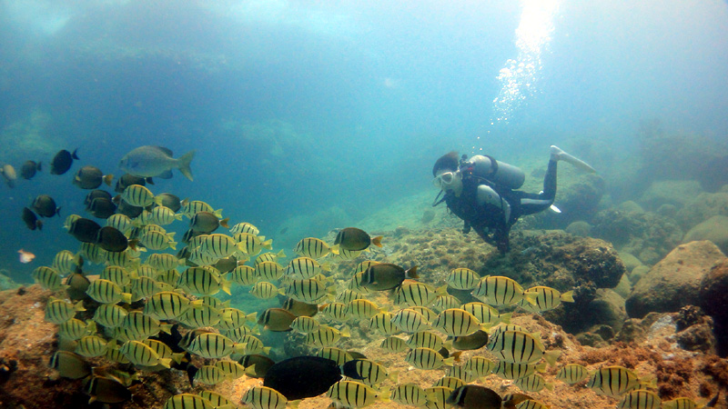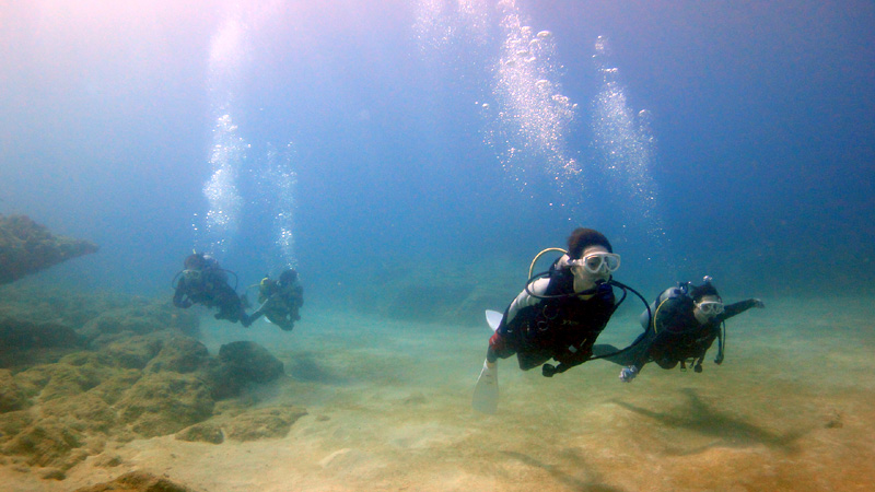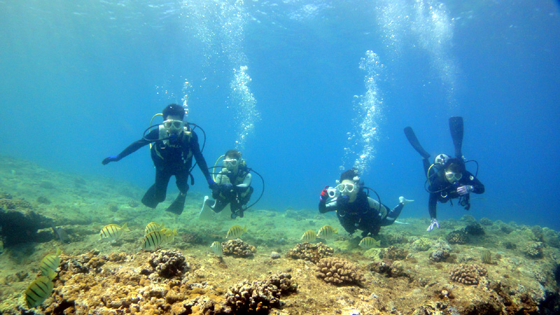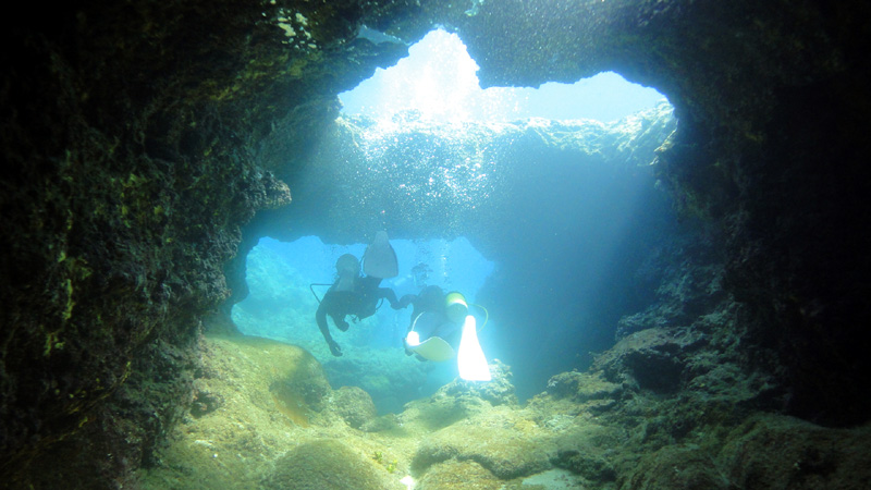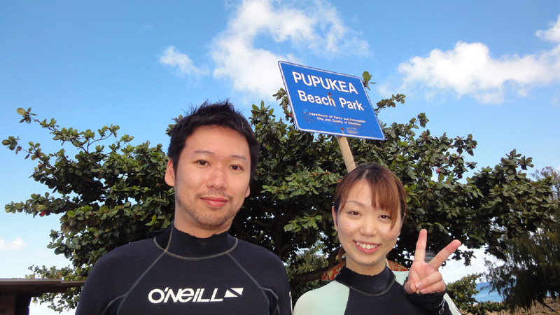 またノースショアに来てしまいました。何時もなら波が出る頃ですが、今年はうねりが少し遅めのようです。今日は毎年帰省?でハワイ入りするReikoさん&Yukoさん、そして青森からお越しのSatoshiさん&Ikumiさんをご案内。海況は至って穏やか、しかしそろそろノースショアへ来るダイビングチームも少なくすいています・・・。今日も、何時ものように準備を済ませたら出発。綺麗な光が水面から差し込み綺麗な光景が目に飛び込んできます。ゆっくりと奥へ進むこと約20分、最初の洞窟へ侵入。皆さん初めてのノースショアですので、洞窟は特に印象的な光景です。そしてシマハギ・ゴマニザ・クロハギの群れや沢山の綺麗な魚を見たりと、次々とシーンが変化してゆくのがノースショアの良いところです。今日は少し長めで73分間のダイビングを楽しんでいただきました。もう一回くらい来られそうな感じでしょうか?ALOHA!
