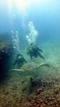 少し移動して、2本目は“KewaloPipe”へ。今度はスイスイ~と潜行して移動開始。こちらでもリーフの魚を見ながら少し遠くまで移動。そして大きな海亀をSeiraちゃんが発見!じっとしている海亀を、こちらもじっと見ながら十分に観察。そして動き出した海亀と一緒に、皆でしばらく泳ぎました。今日も安全にダイビングが出来ました。Aloha!