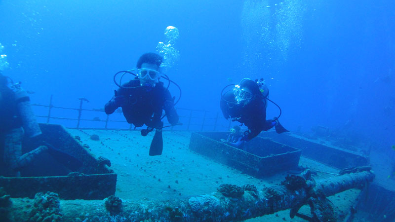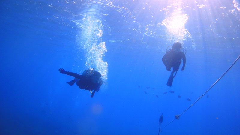 朝7時の気温は20度、ハワイもヒンヤリする季節になりましたが、昼前には28度まで上がります。雲が全く無い澄み切った青空の今日は、埼玉県からお越しのTakashiさん&Tatsushiさんを南の上級ボートダイビングへご案内。一本目は水深30mオーバーに沈む沈船”SeaTiger”へ。流れも全く無く、しかもボートの上から沈んだ船体が見えるほど抜けた水中に入ると、30m以上したの船体がくっきりと見える良いコンディションです。船体まで降りたらゆっくりと移動、船内を通り抜けたりしながら、初の沈船を楽しんでいただきました。そして二本目は”NautilusReef”へ。ここでは沢山の美しい魚、そして目の前1.5mを泳ぐホワイトチップシャークなどを楽しんで?頂きました。お二人ともブランクがありましたが、全く問題なく満喫していただけたようです。ALOHA!