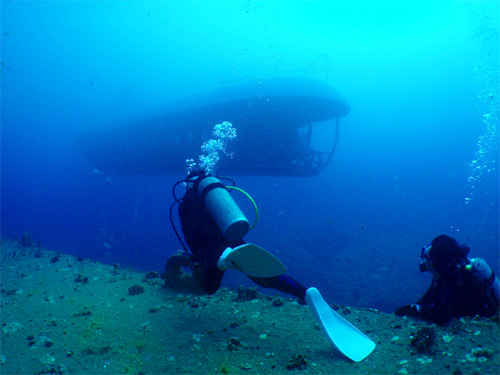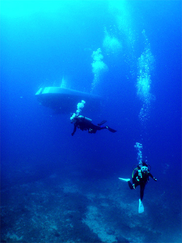ブランクがあるお二人でしたがダイビングにもすっかと慣れた様子なので、今度はもう少し潜水艦に近づいてみます。