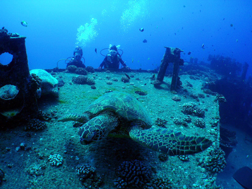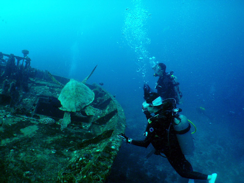海がめ、サメ、そして珍しい潜水艦にも遭遇できたし、今日は2本目もココで潜って大正解でした!