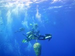 24日~26日までご一緒したTeruyoさんは本日ハワイ最終日、と言うことで最終ダイブへご案内。一本目のポイントは軍用タンカーが沈む“YO267”。流れがあるかも・・・と心配しましたが、弱い流れだけで殆ど問題なし。そして水中も40m程度は見通せます。隣に沈む沈船“St,Pedro”へ先に向かい、船体を抜けて船尾の下を回りこみます。そしてYO257へ戻った時、5枚のマダラトビエイが変編隊飛行中!ついてます。そして再び船内を通り抜けて浮上地点へ戻ると、今度は大きな海がめが寝そべっていました。Teruyoさんは初めての30mオーバーでしたが、終始落ち着いて難なく楽しんでいただけている様子・・・。2本目のポイントは“KewaloPipe”へ。こちらでは、リーフの上をゆっくりと移動しながら魚やウツボを観察。今日も安全第一でダイビングは終了。ALOHA!
