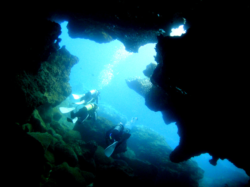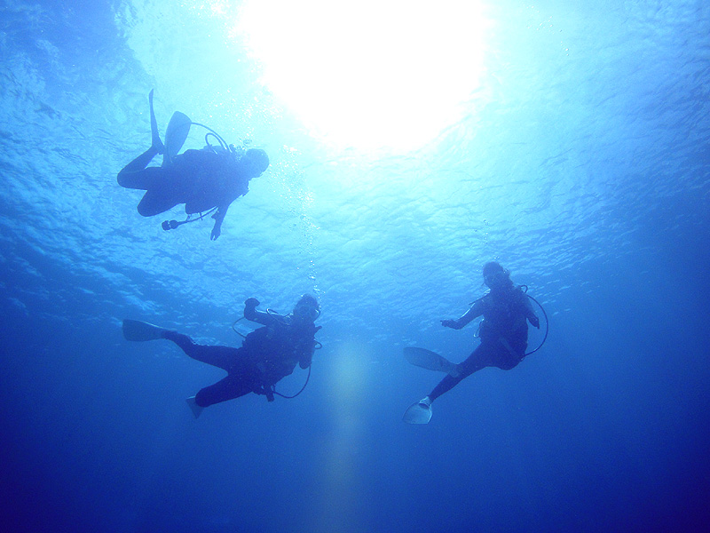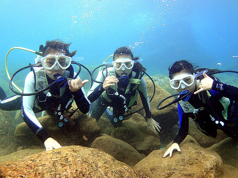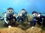 いよいよノースショアの季節がやってきました。今日は、先週ハワイの中学を卒業したばかりの仲良し3人組、Namiho & Asuka & Tianna をノースショア・テストダイブへ。曇り時々晴れの天候ですが海は穏やか。浅場でゆっくりと練習を済ませたら徐々に深いところへ向かいます。耳抜きも慎重にしながらジリッジリっと水深7mまで・・・。時々日が差してくると、水面から放射線状に伸びてくる光が綺麗です。開始から15分過ぎた頃、シマアジ・ゴマニザ・クロハギの群れが、去年と同じ様に現れてくれました。そしてラバチューブを通り抜けながら、出口の光も美しいままです。今日はテストダイブですので、何時もより少し短めな45分間のダイビング。後半では3人とも自由に水中を楽しめるほど上手にダイビングしていますよ。ワイキキからは少し遠くですが、やはりこの時期のハワイは、水中もハレイワのオールドタウンも含めて、ノースショアが最高です。『期間限定!ノースショアダイビングツアー』、皆様のご参加をお待ちしております。ALOHA!