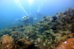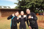 昨日に続き、Azumiさん&Sacheeさん、そしてハワイの友人Eli(イーライ)君をノースショアの“BigTube”へご案内。三日前、ノースショアのコンディションは珍しく濁りましたが、今日は結構良い状態に戻っています。ゆっくりと沖に向かって進みながら、何時ものシマハギ・クロハギ・ゴマニザの群れが周りを囲んでくれます。そして岩ノ下に潜り込む様に通り抜けられるトンネルを抜けると大きな門のような形をしたリーフを超えて進みます。開始から25分で、目的地の大きなケーブに到着。ちょうど海亀も一緒に進入。ぐるりと回って反対側から引き返し、岸に向かって進路をとります。今日も穏やかなノースショアで60分間のダイビングを楽しんで頂きました。ALOHA!