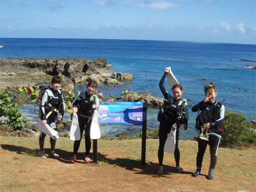 一昨日の東ボートダイビングに続き、女性4名のFujiokaさんチームとノースショアへのダイビングでした。もちろん今日も空は真っ青、波なしのペッタンコでコンディションは良好。ゆっくりと準備を整えたら出発です。