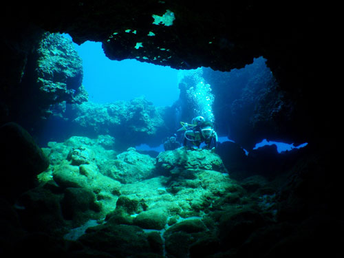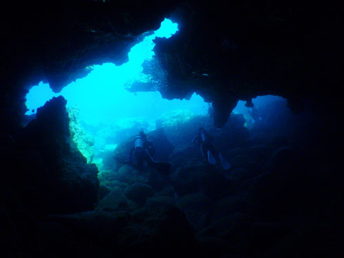 暗~い洞窟の中は少し怪しげな感じですが、青く光る出入り口は何時見ても本当に神秘的!!この2ヵ月半は、ダイバーだけではなく我々ダイビングインストラクターにとっても本当に貴重な期間なのです。