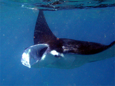 アロハ! ハナウマ湾で体験ダイビングに夫婦で参加した中野です。 お目当ての海ガメが見られなかったのは残念でしたが、代わりにマンタが見られて大 感激です。 その他の魚も沢山見られたし、もうライセンスを取るしかない、と言った感じです。 (その前に嫁さんを説得しなければなりませんが…) 日本に無事帰って来れたのでマンタの写真を送ります。 画質補正はしていませんが、サイズがデカかったのでちょっと縮小しました。 素人が撮ったものなので見づらいですが、補正すれば結構見られるようになると思い ます。 それでは。