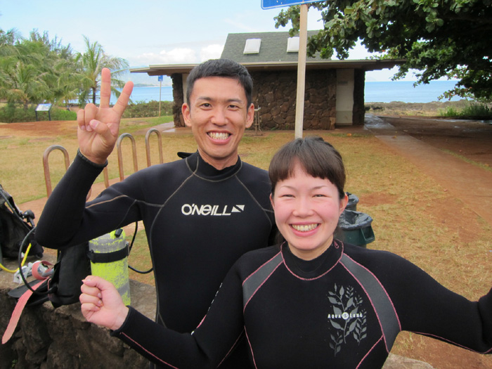 タイトル:来年もハワイに!! ご参加者:リョウイチ&アキさん ご参加ツアー:夏季限定!ノースショア 先日ダイビングでお世話になった宇田川です。 先ほど日本に帰国しました。 本当に楽しいダイビングを体験させていただきありがとうございました! 来年までにライセンスを取得し、もっとダイビングを楽しみたいと思います。 若松と来年もハワイに行きたいと話しており、そのときにはまたぜひお願い致します。